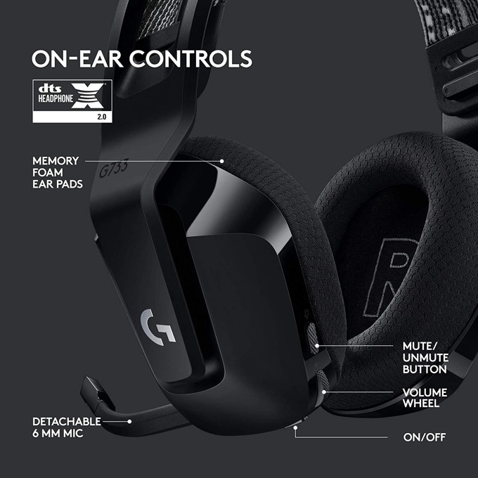 Logitech G733 Wireless Headset, Lightsync RGB, Lightspeed Wireless, PRO-G 40 mm Drivers, DTS Headphone:X 2.0 Surround, Blue Voice Microphone, 278 g, Black 981-000864