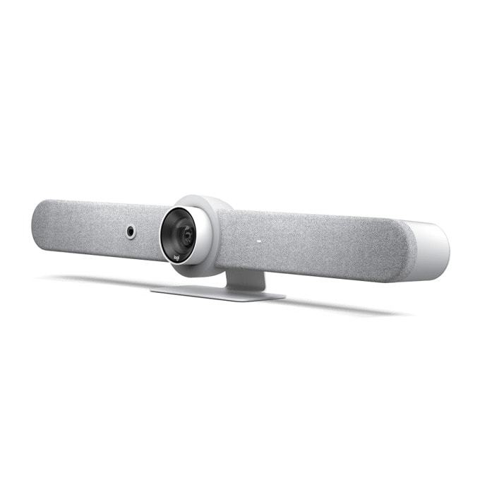 Конферентна камера Logitech Rally Bar White (960-001323), 2x колони, 4K, вграден микрофон, управляема (PTZ), LAN, Wi-Fi, HDMI, USB, бяла