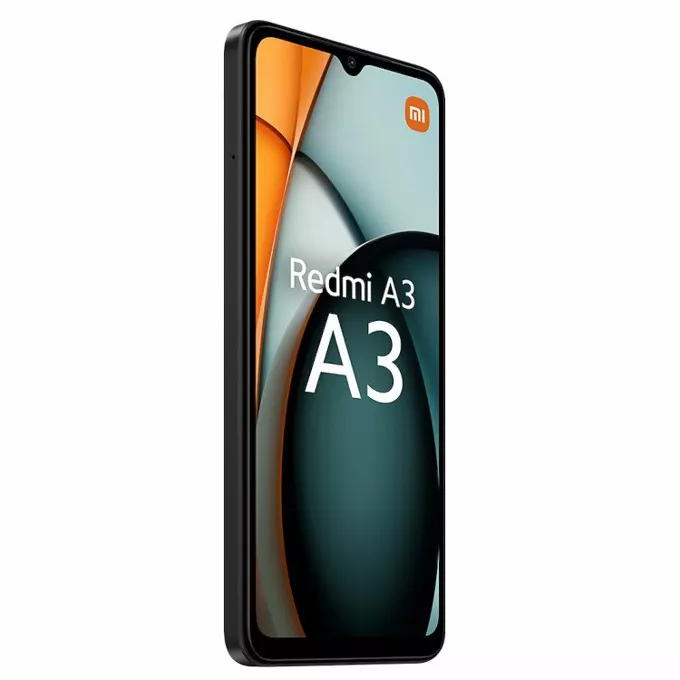 Xiaomi Redmi A3 (черен), поддържа 2 SIM карти, 6.71" (17.04cm) IPS LCD, осемядрен Mediatek Helio G36 2.2GHz, 3GB RAM, 64GB Flash памет (+microSD слот), 8 + 5 Мpix камери, Android, 193g, MZB0GL8EU
