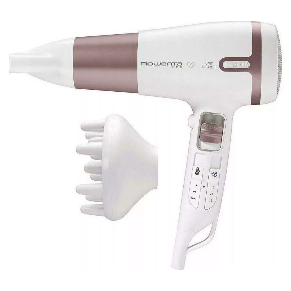 Сешоар Rowenta CV7461F0, 2400W, 2 степени на скорост, 3 температури, защита от прегряване, йонен генератор, бял