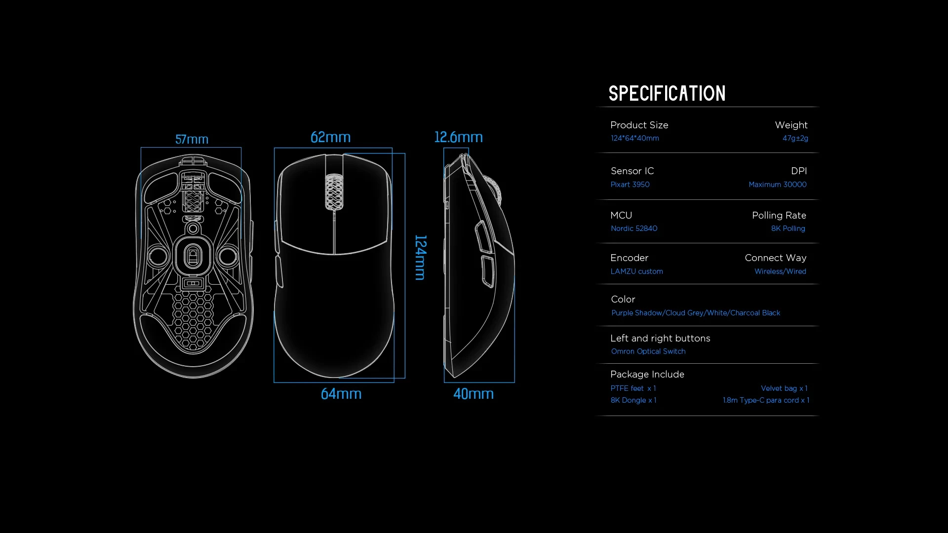 Lamzu Lamzu професионална геймърска мишка INCA 8K Wireless Mouse Black - LAMZU-INCA-BK