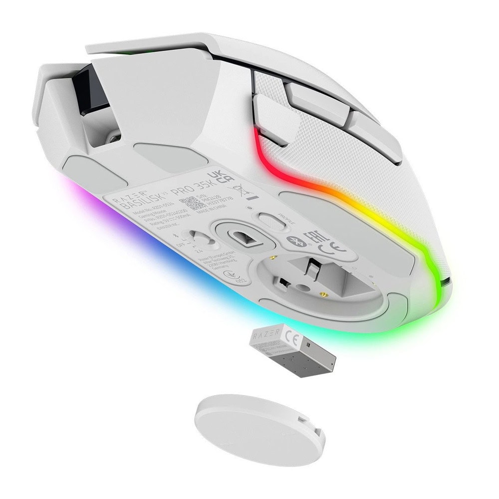 Razer Basilisk V3 Pro 35K, White, Gaming Mouse, HyperSpeed Wireless, Bluetooth, Focus Pro 35K Optical Sensor Gen-2 - RZ01-05240200-R3G1