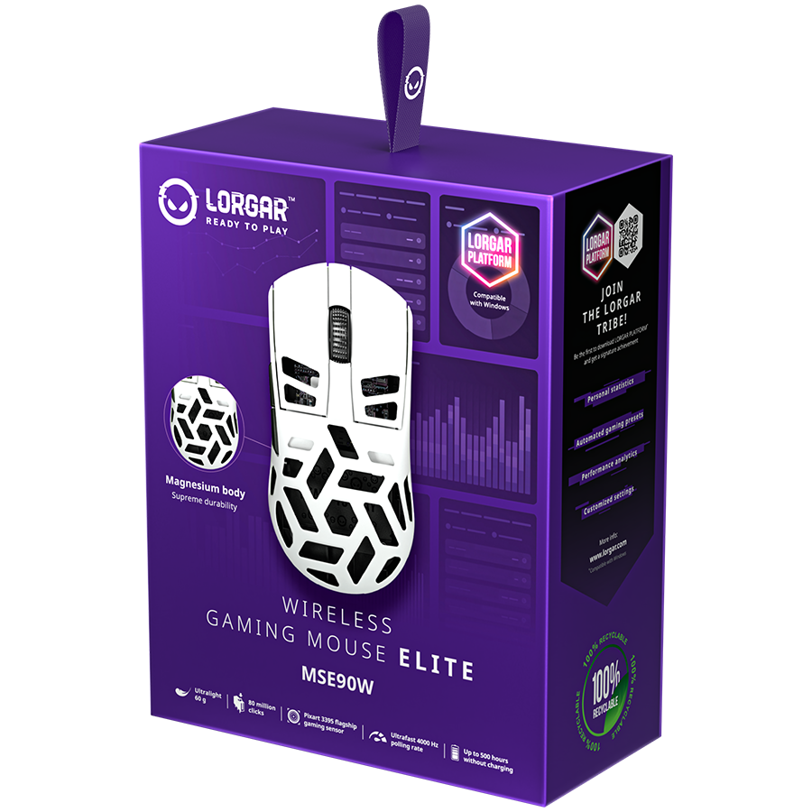 LORGAR MSE90W, Magnesium Alloy Wireless Gaming Mouse Elite, White - LRG-MSE90W-WH