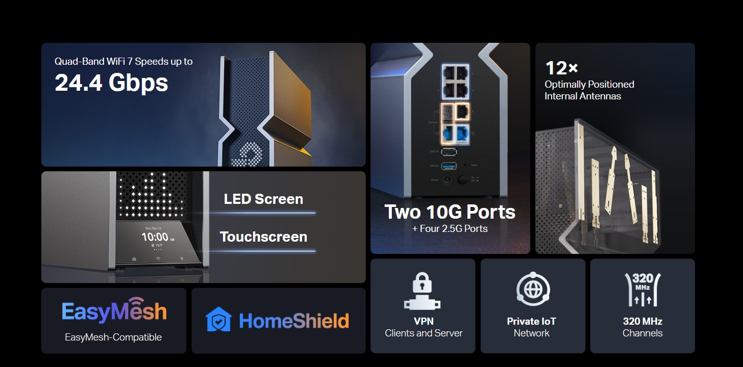 Рутер Wi-Fi 7 TP-Link Archer BE900 24000 4-лентов (v)