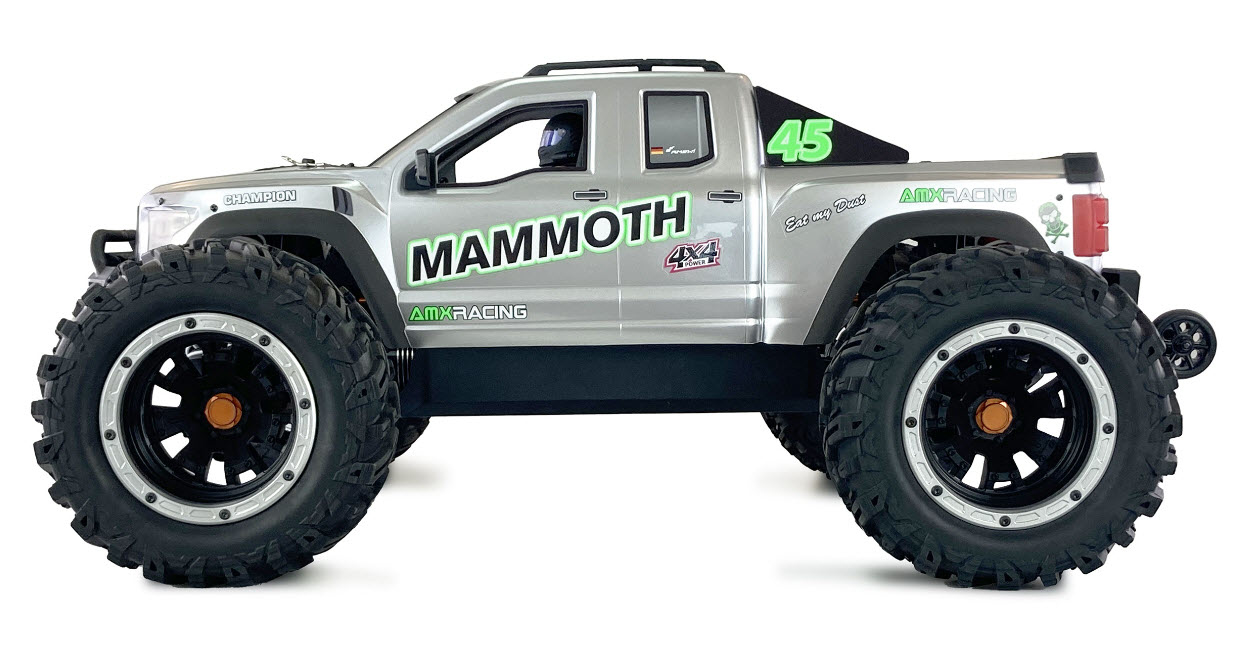 Mammoth Monster Truck се задвижва от 150A Rocket регулатор и 4292 безчетков мотор с 1450kv. Това му позволява да достигне скорост до 80 км/ч, превръщайки го в истинско чудовище на пътя. Огромните гуми за офроуд осигуряват страхотно сцепление и проходимост на всякаква повърхност.