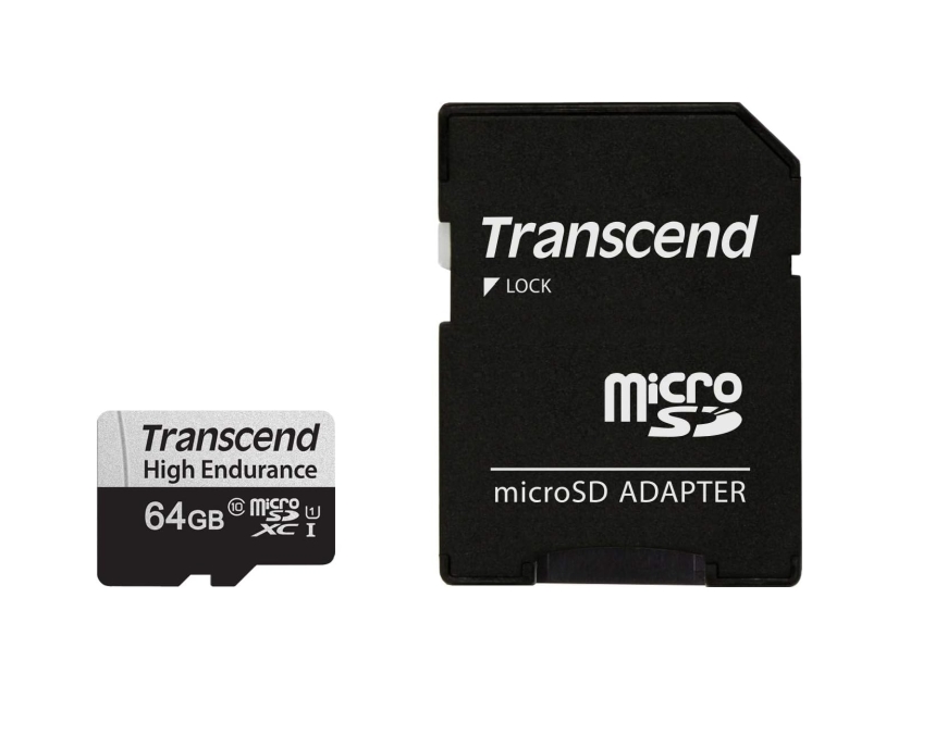 Transcend 64GB micro SD w/ adapter U1, High Endurance - TS64GUSD350V