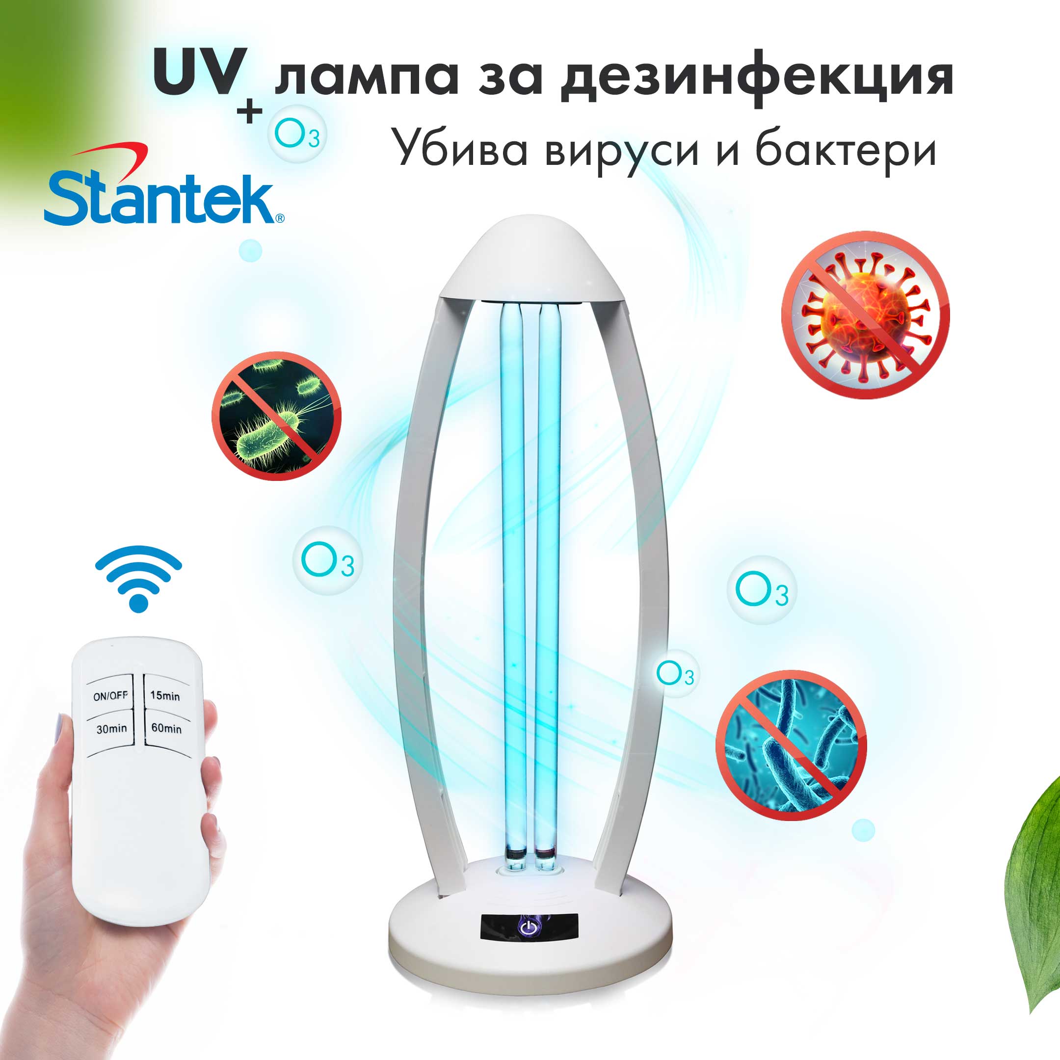 Мощна ултравиолетова бактерицидна лампа с дистанционно за дезинфекция на помещения срещу вируси, бактерии и плесени.