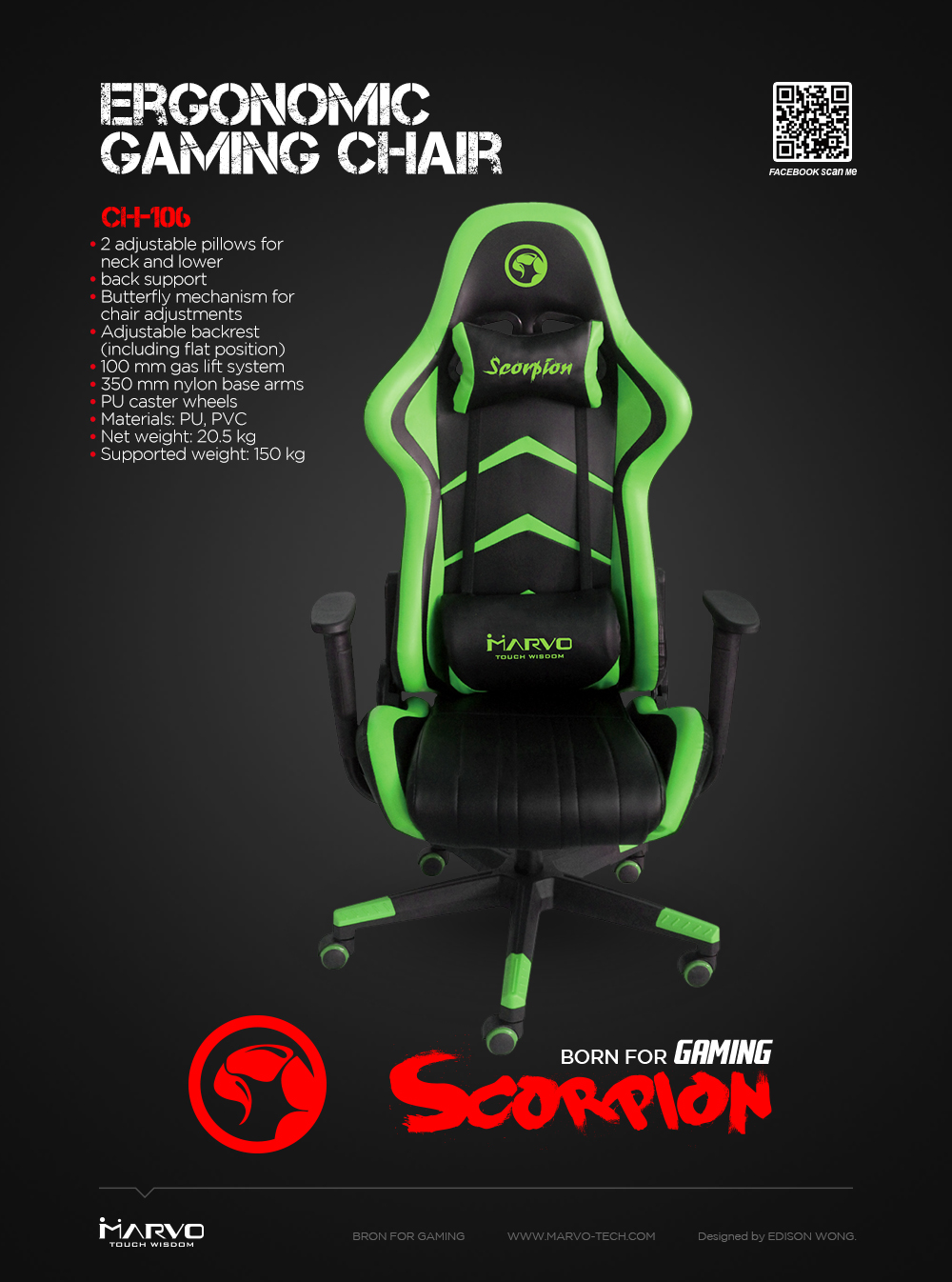 Marvo Marvo геймърски стол CH-106 Black/Green - MARVO-CH-106-GN