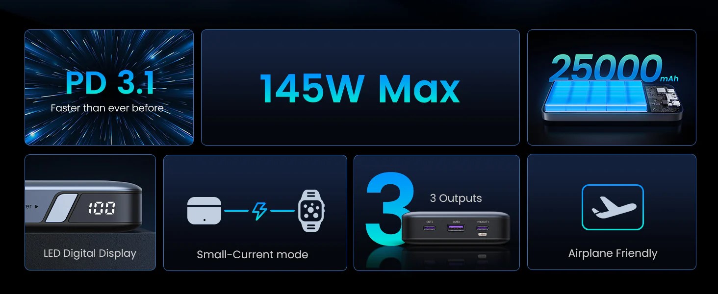 Външна батерия Ugreen Nexode 25000mAh 145W PB205 90597A (v)