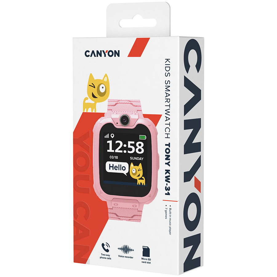 Canyon Kids smartwatch, 1.44 inch colorful screen, GPS function, Nano SIM card, 32+32MB - CNE-KW34BL