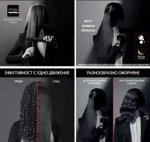 Изключителността на този продукт идва с неговите 8 настройки на температурата, които варират от 140°C до 210°C, позволявайки ви да намерите идеалната за вашия тип коса. Керамичното покритие Keratin & Glow осигурява не само безупречно плъзгане, но и допълнителен блясък, като същевременно предпазва косъмите от увреждане.
