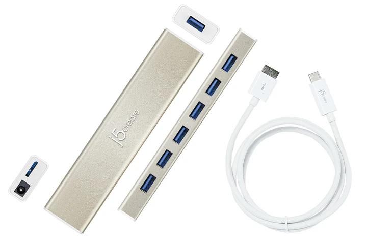 Хъб 7-портов J5 Create USB-C JCH377, USB 3.0, 1:7, Бял - J5-JCH377