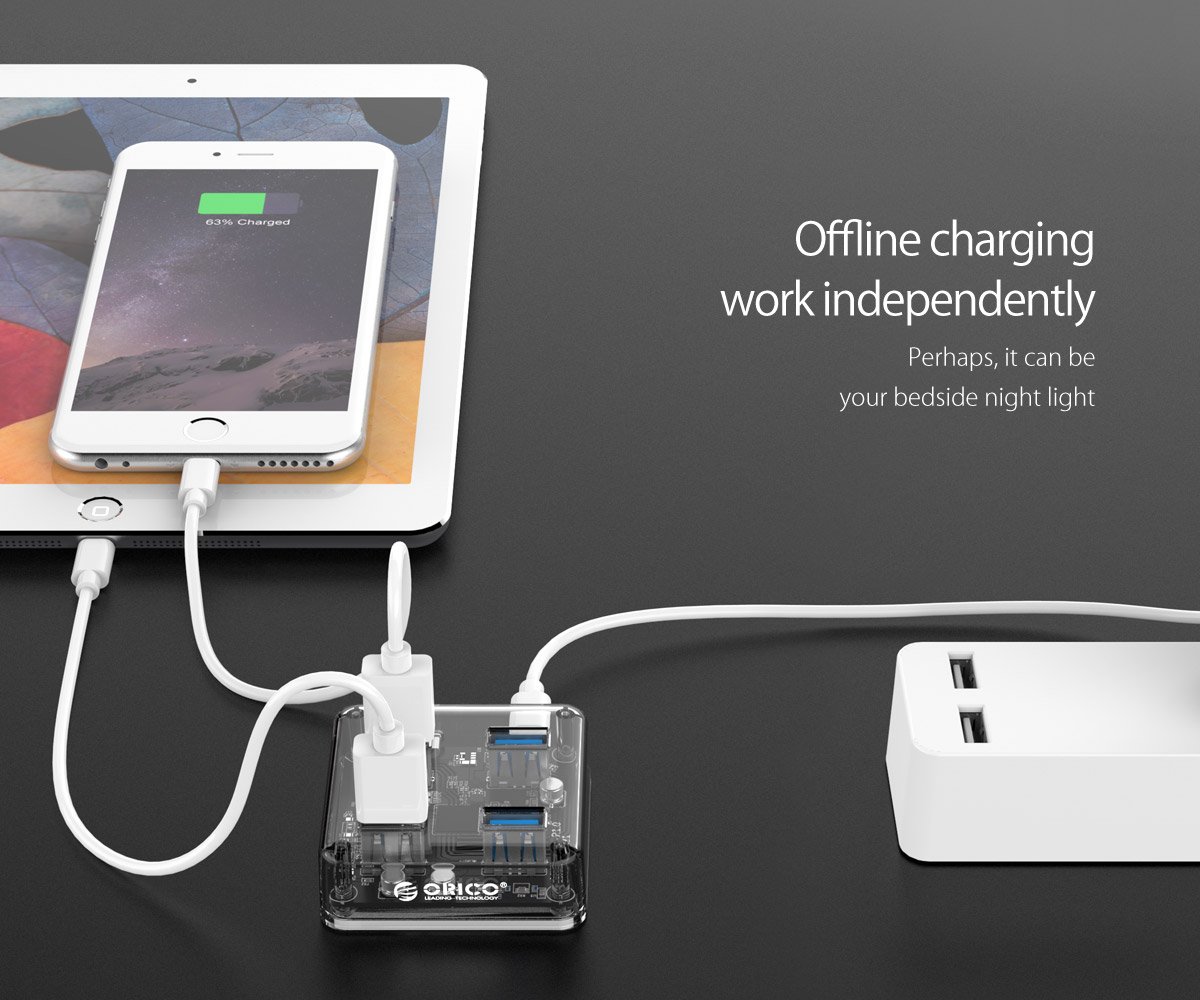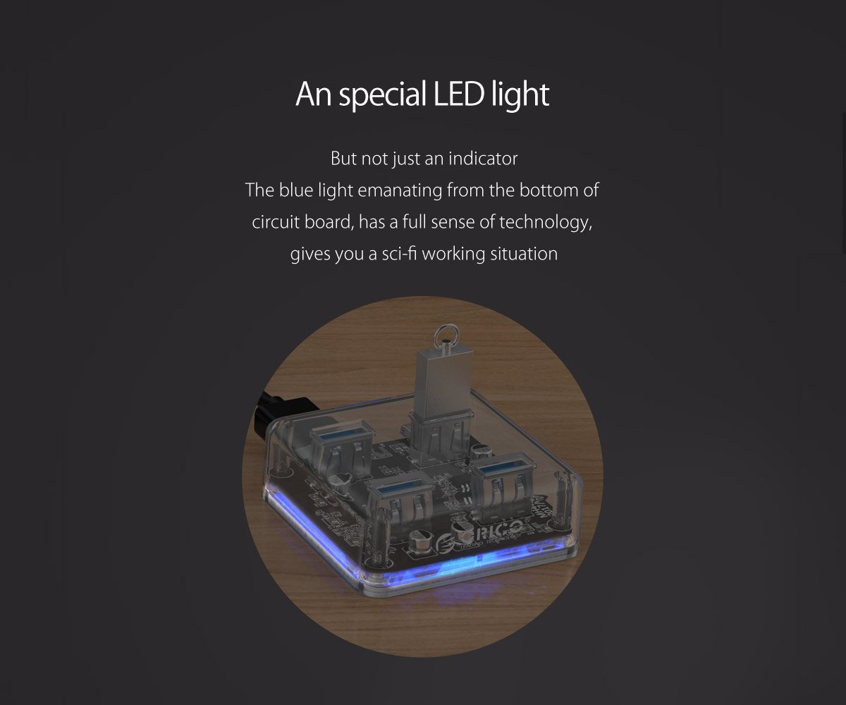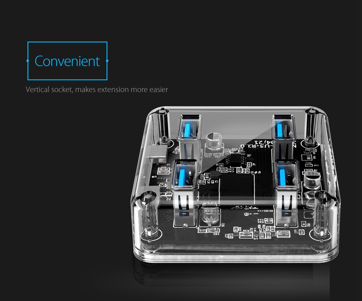 Orico Orico хъб USB3.0 HUB 4 port transparent, 1m cable - MH4U-U3-10-CR