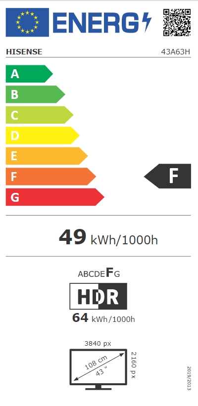 Hisense 43" A6Q, 4K Ultra HD 3840x2160, DLED, DFA, Precision Colour, HDR 10+, HLG, Dolby Vision,Light sensor - 43A6Q