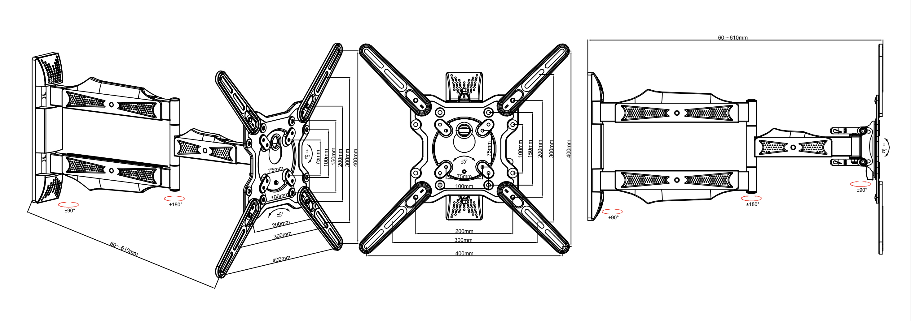 MB6539 Стойка за стена за TV,42"-75", до 40кг, 2 рамена - 101см - MB6539