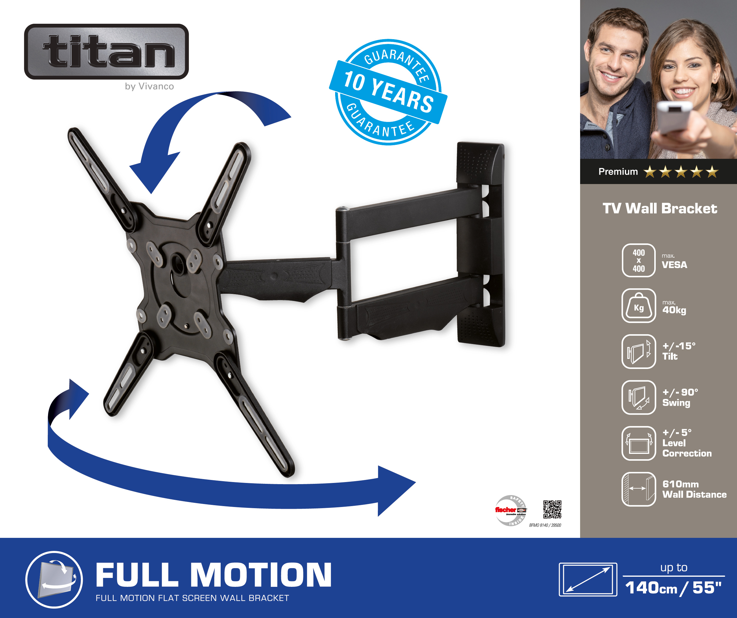 Vivanco 39500 Стойка за монтаж на LED\LCD телевизор за стена, с движение, VESA 400, разстояние от стената до 61см - 39500