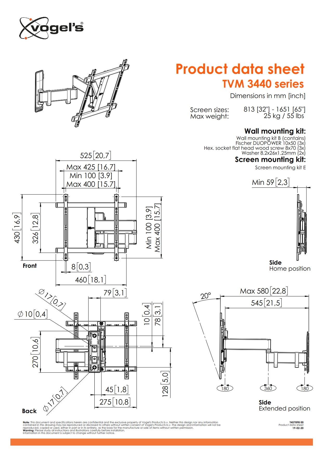 Vogel's MA2040 Стойка за стена за LED/LCD с размер 19"- 40" с две рамена и наклон 15° - MA2040