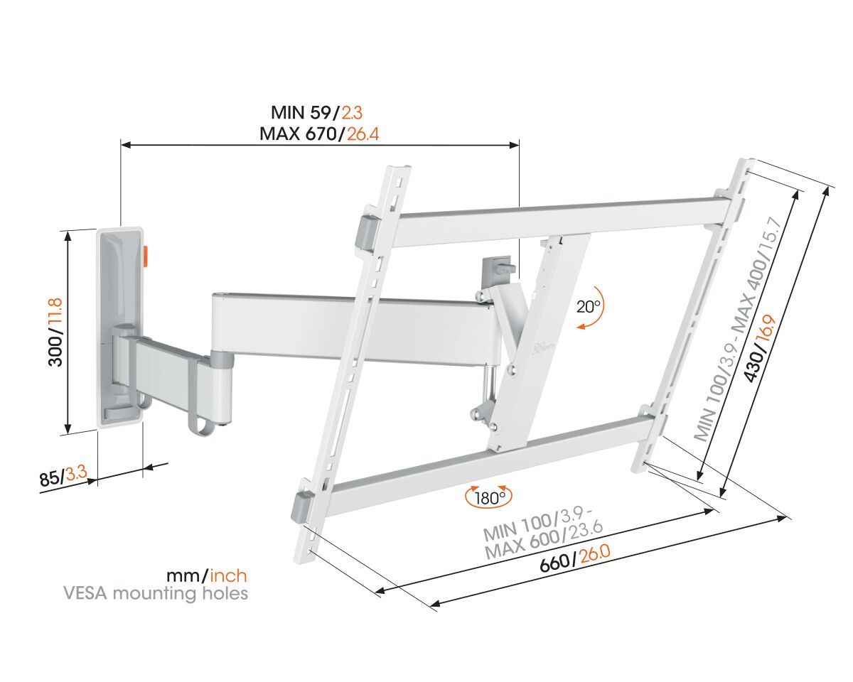 Vogel's MA3030 Стойка за стена за LED/LCD с размер 32"- 65" с едно рамо и наклон 15° - MA3030