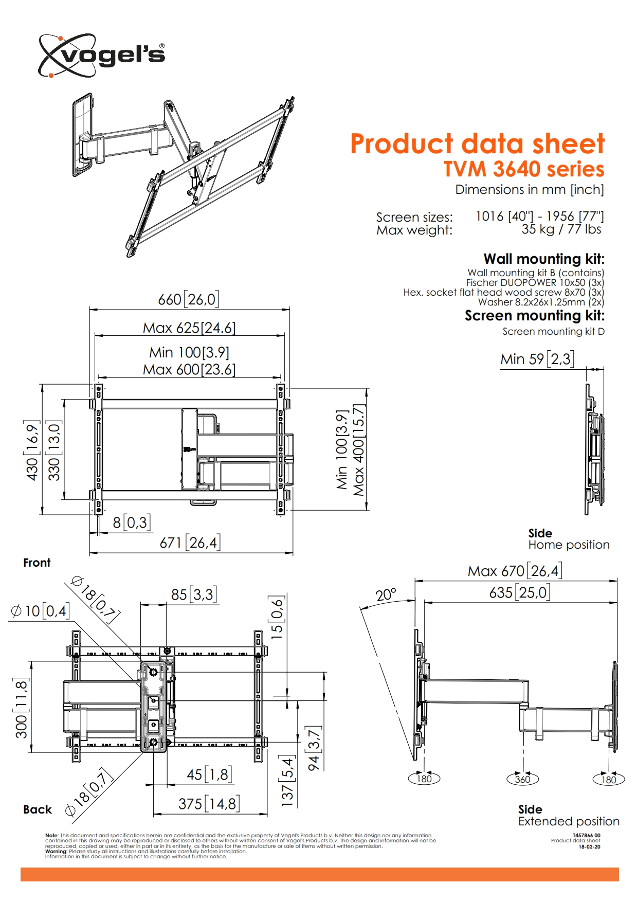 Vogel's TVM 5645W ELITE Стойка за TV 40-77", с две рамена - TVM 5645W