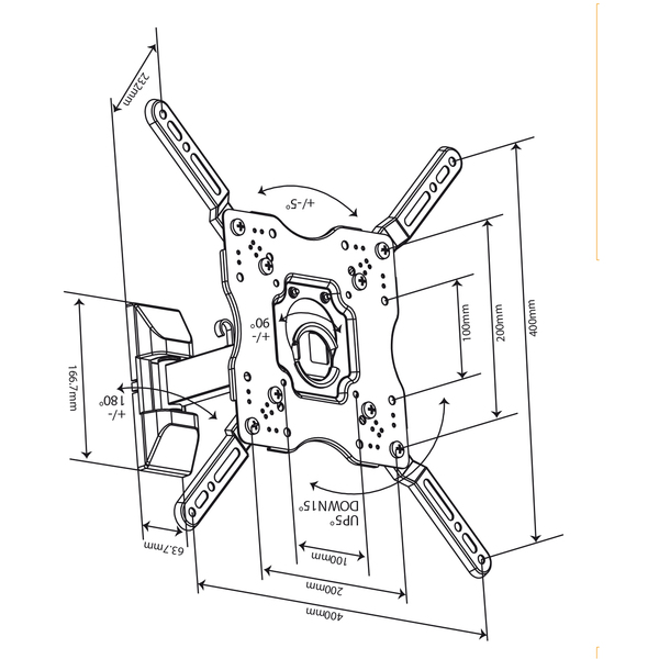 MB2647 Стойка за стена за TV,48"-69", до75кг, въртене до 180° - MB2647