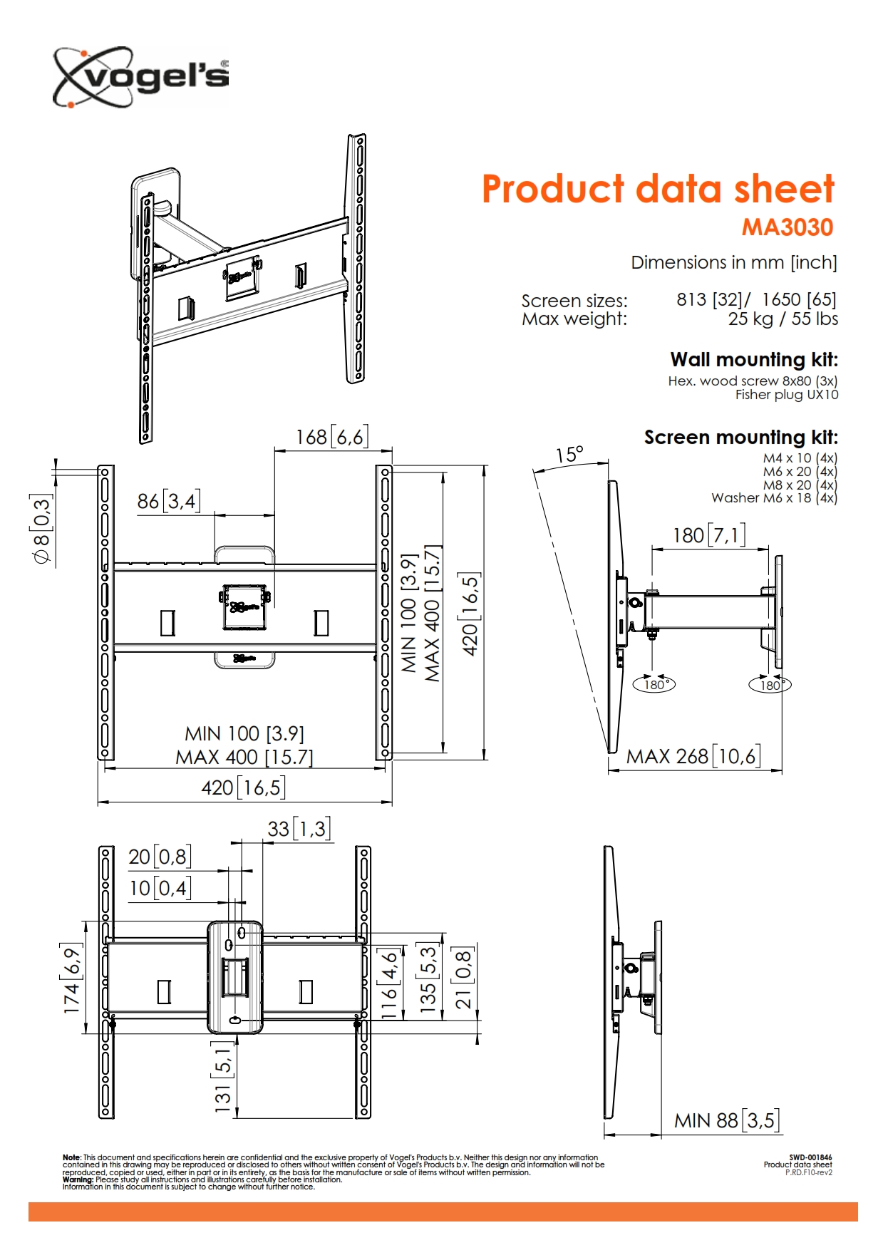 Vogel's MA3030 Стойка за стена за LED/LCD с размер 32"- 65" с едно рамо и наклон 15° - MA3030