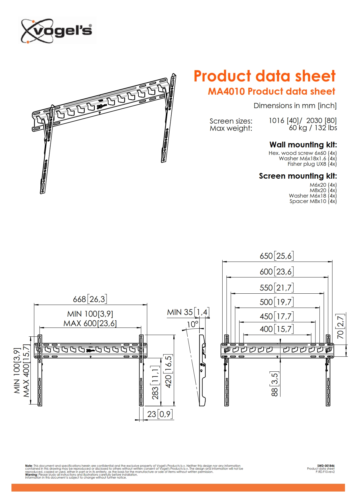 Vogel's MA4010 Стойка за стена за LED/LCD с размер 40"- 80" с наклон 10° - MA4010