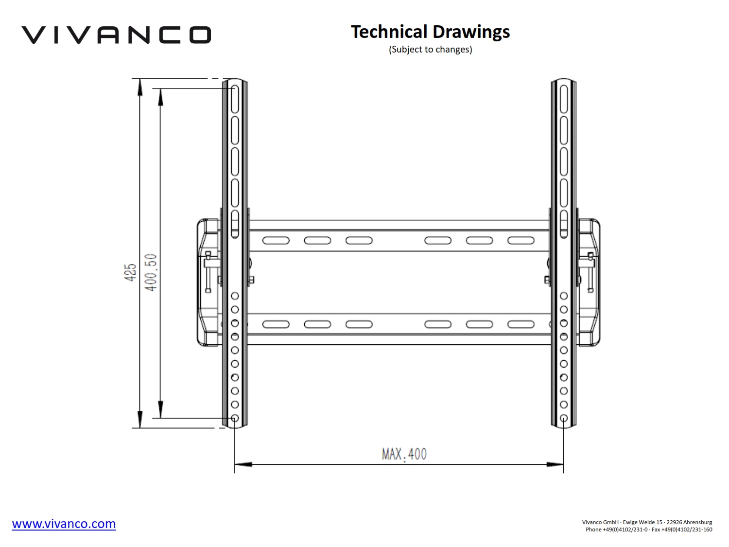Vivanco 37974 TV Стойка с наклон 10 градуса за екрани до 55 инча, VESA 400, max 35kg. - 37974