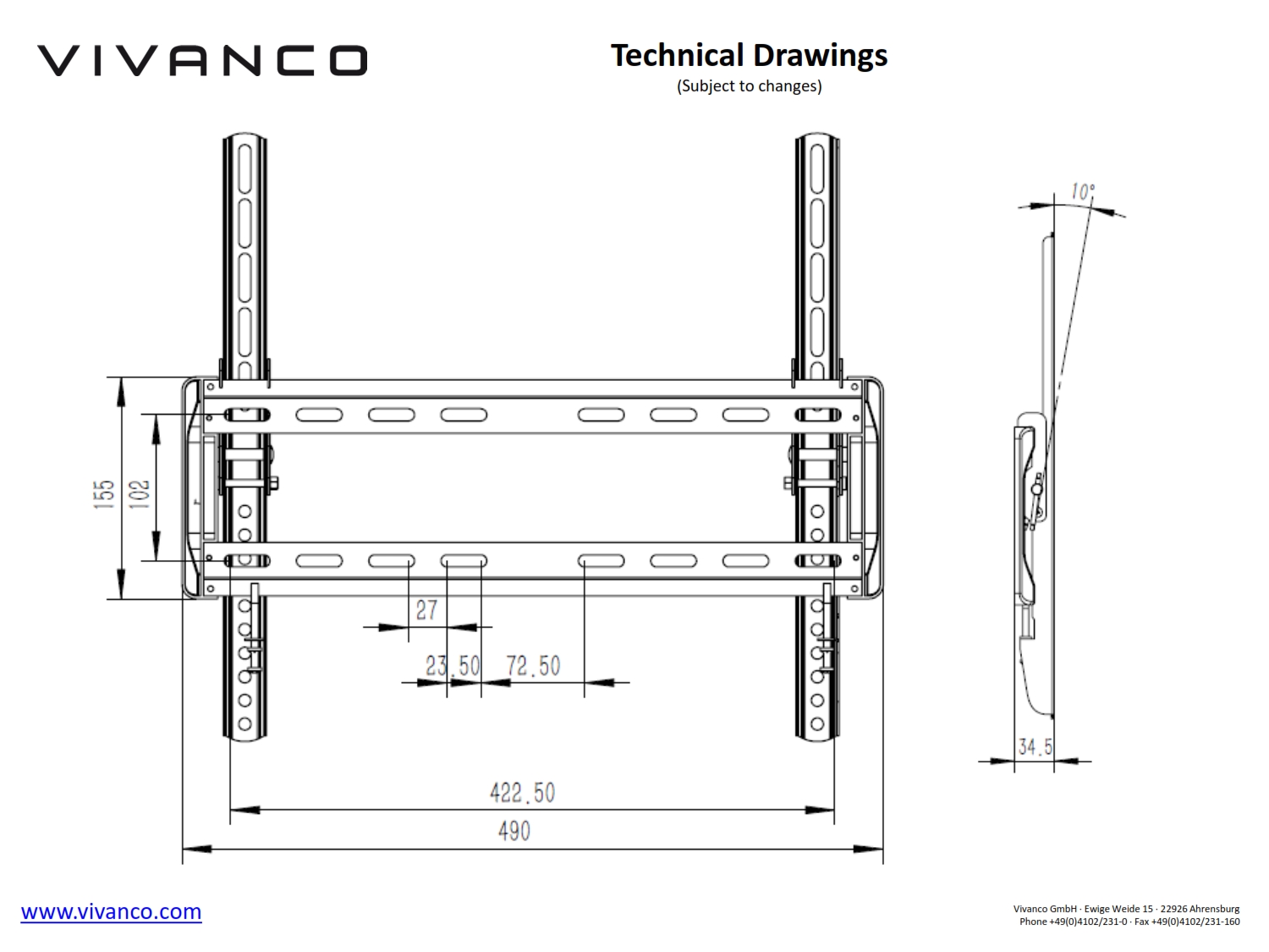 Vogel's MA4010 Стойка за стена за LED/LCD с размер 40"- 80" с наклон 10° - MA4010