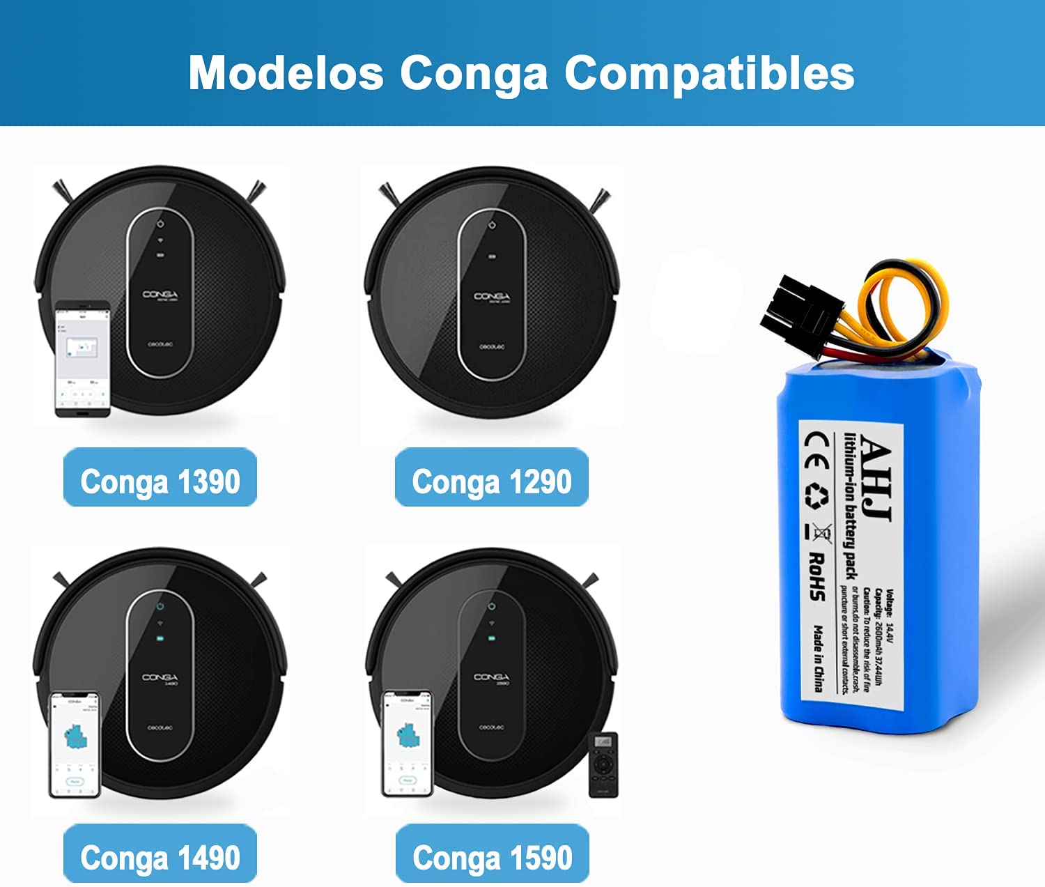 Батерия за прахосмукачка робот Cecotec Conga 1290 / 1390 / 1490 / 1590, 2800 mAh - 107