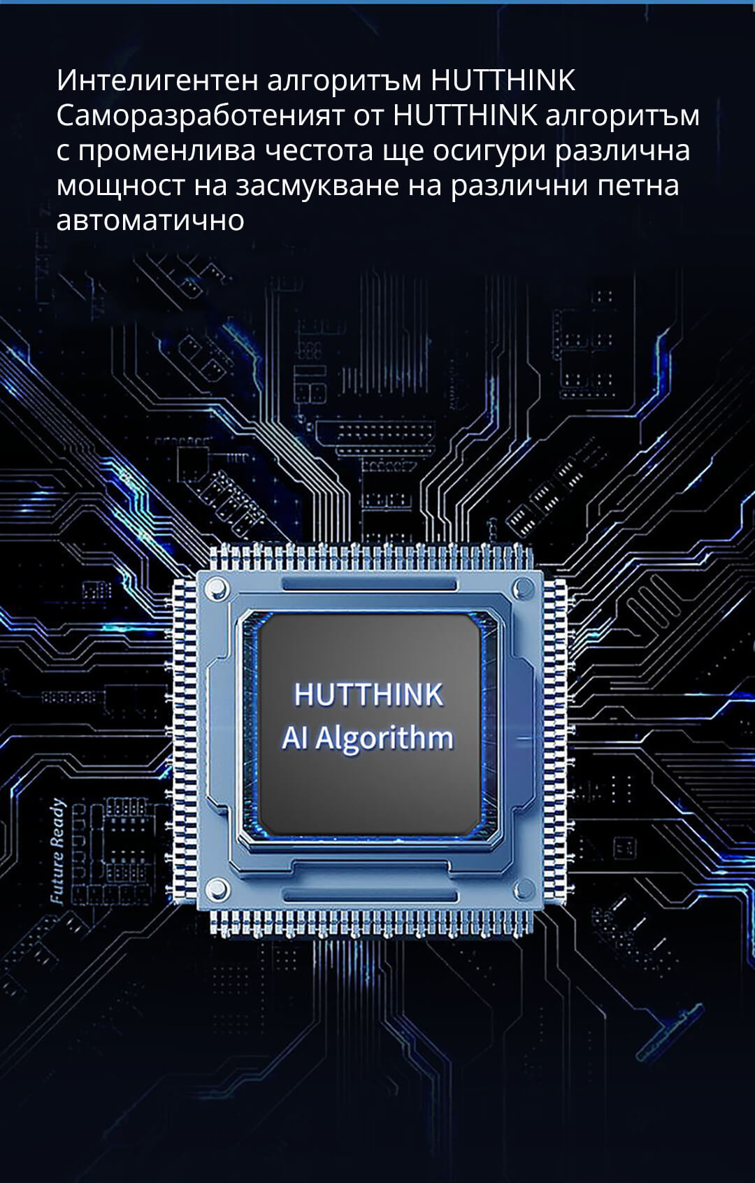 - Интелигентен алгоритъм, който позволява на робота да се адаптира към различни среди и петна, като е наличен набор от режими, осигуряващи подходящо почистване в зависимост от вида на повърхността и замърсяването.