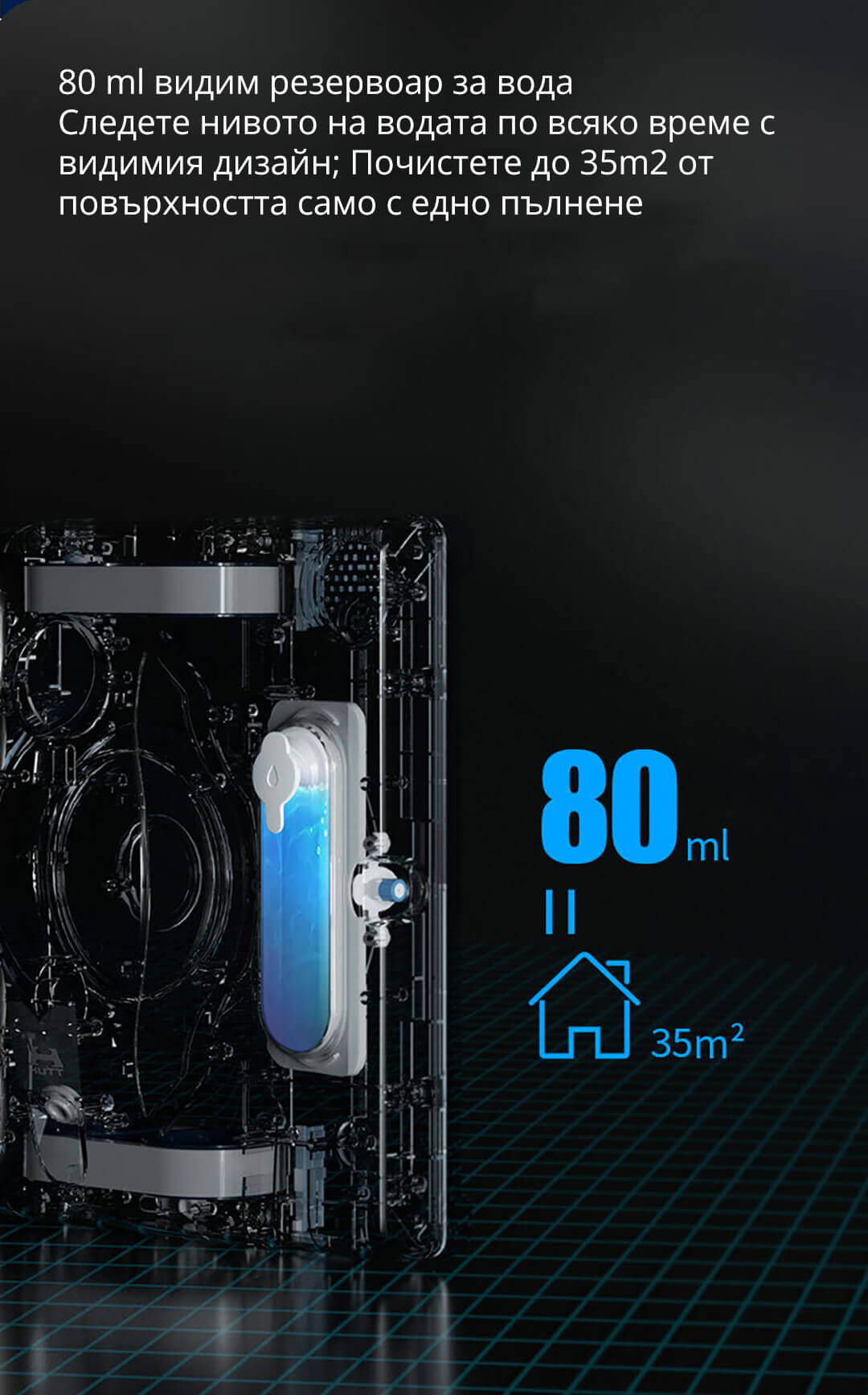 - Контейнера за вода - 80 мл (достатъчен за почистване на до 35 м2 площ)