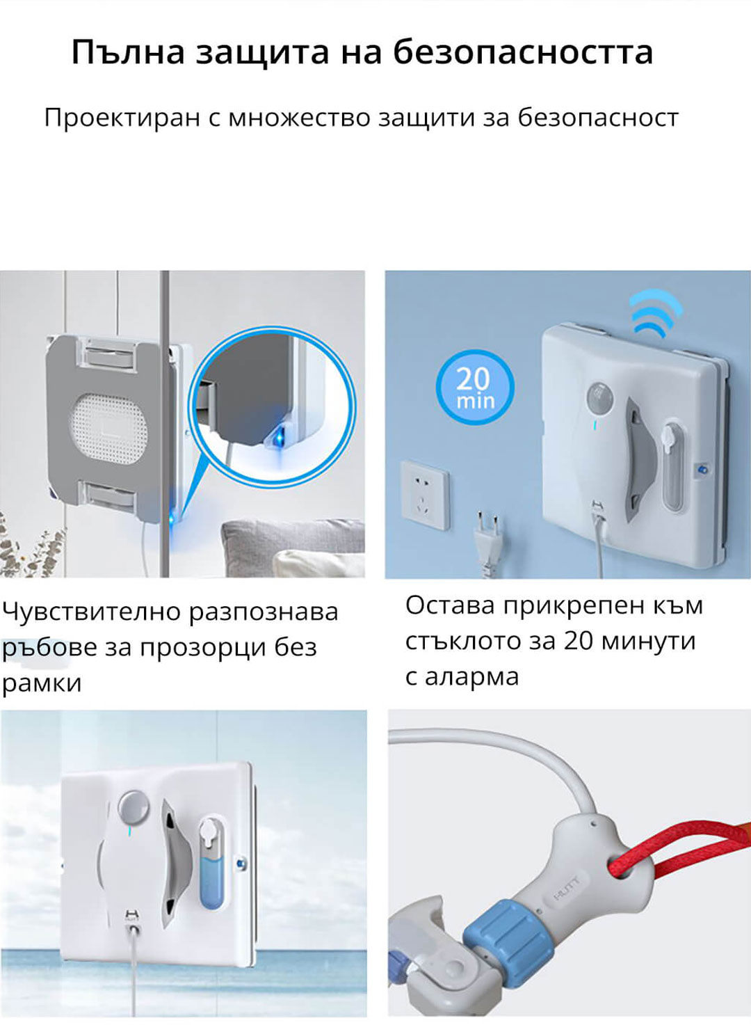 * Роботите за прозорци не се препоръчват за силно замърсени прозорци, а са предназначени за поддържане на чистотата им!