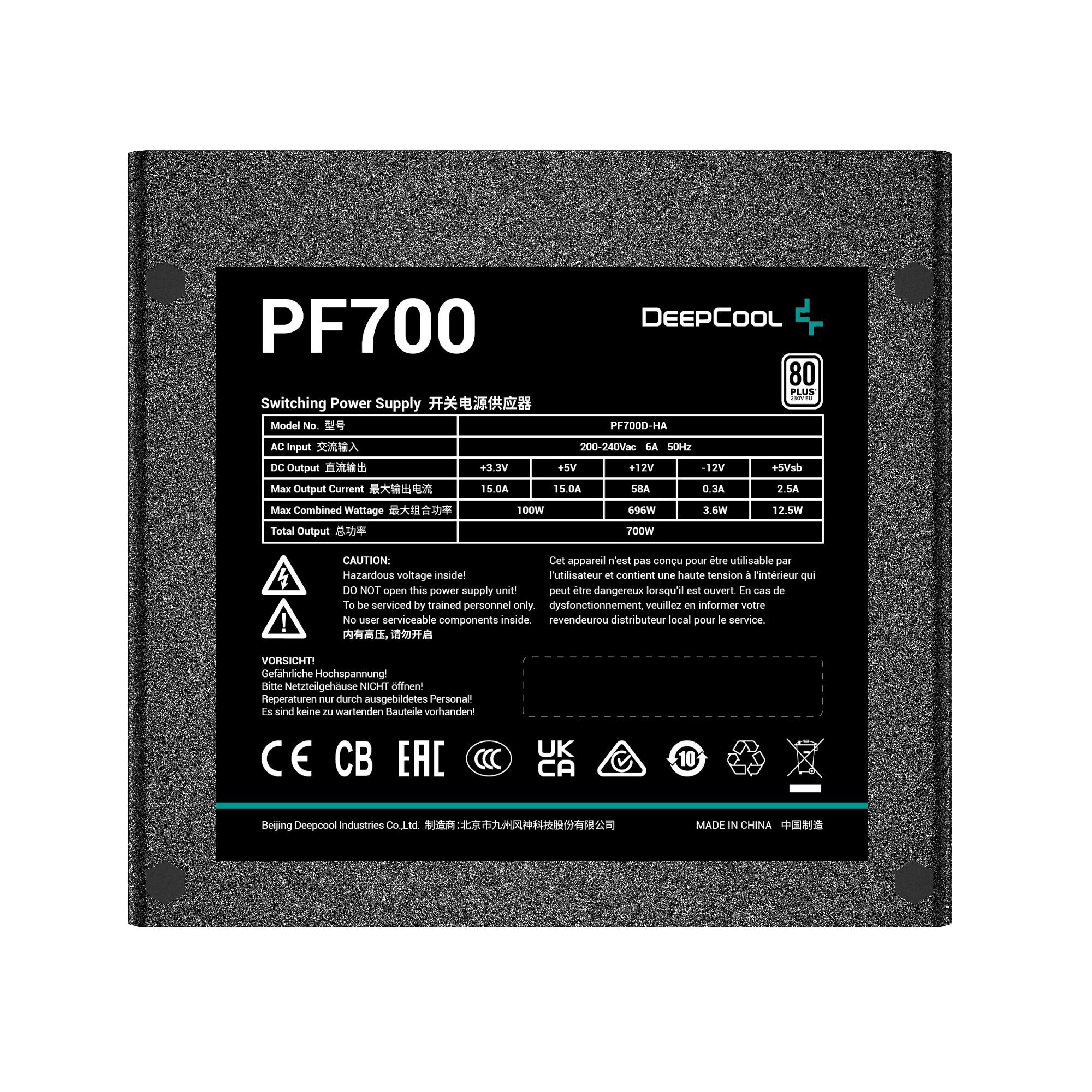 Захранване DeepCool PX1300-P, 1300W, 80 Plus PLATINUM, Fully Modular, Flat Black Cables - PX1300-P