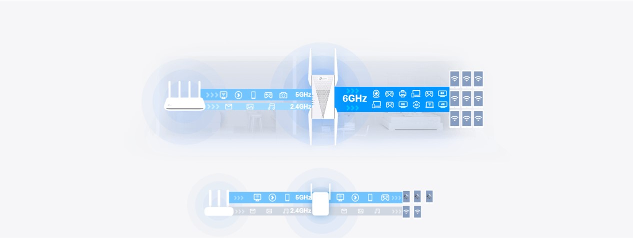 Удължител на обхват TP-Link RE815XE AXE5400 Mesh Wi-Fi 6E 3-лентов
