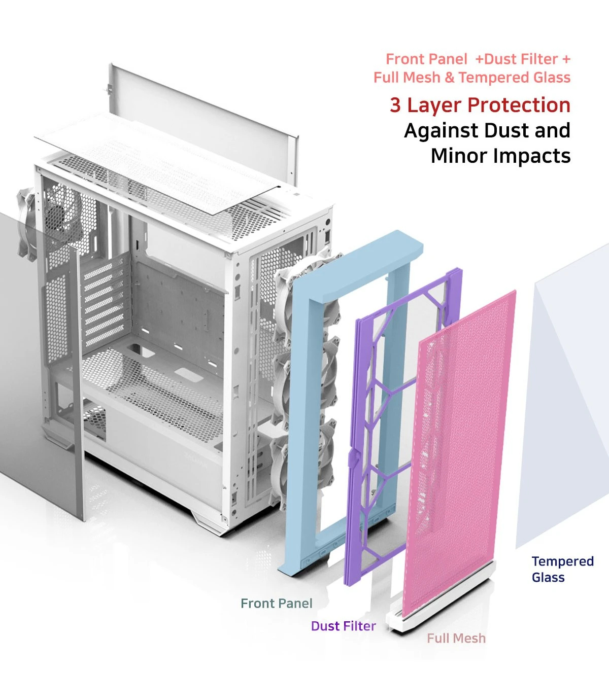 Montech Montech кутия KING 95 Pro, Dual Chamber Mid-tower Case, 6 ARGB Fans, 2 Front Panels, White - MONTECH-KING-95-PRO-WH