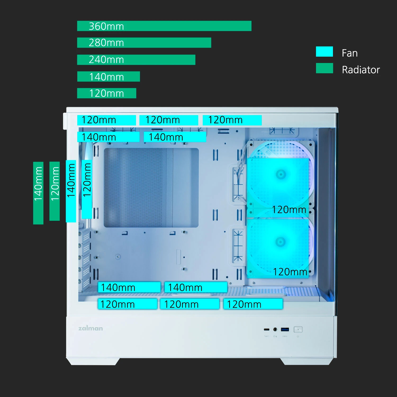 Geometric Future кутия Case EATX - Model 5 Vent White - 5 x 140 mm aRGB fans included