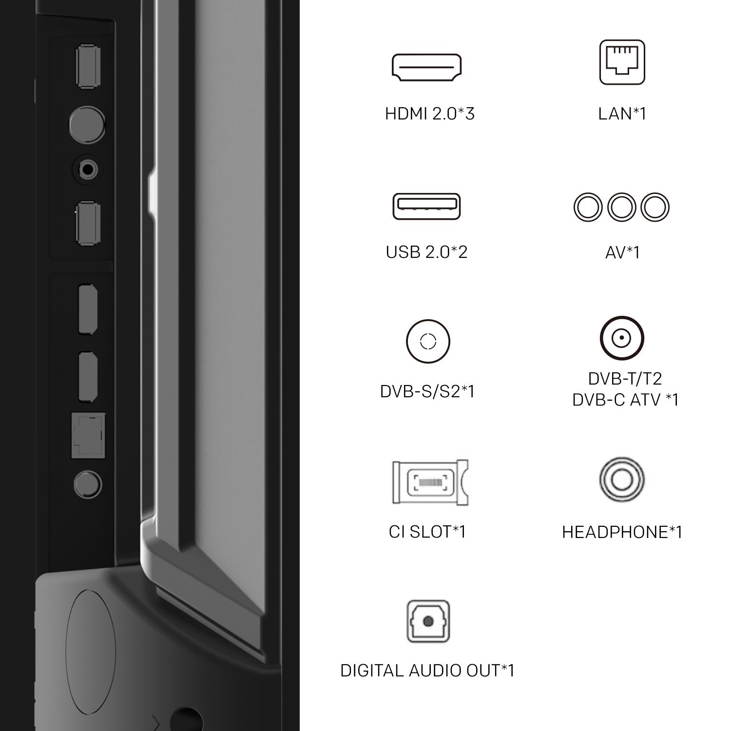 Hisense 85" A6N, 4K Ultra HD 3840x2160, DLED, DFA, Precision Colour, HDR 10+, HLG, Dolby Vision, DTS Virtual X, Smart TV, WiFi, Light Sensor, Gaming Mode, 1xHDMI2 eArc, 2xHDMI, 2xUSB, LAN, CI+, DVB-T2/C/S2, Black, 85A6N https://stantek.com/?i=198309&q=%D0%A2%D0%B5%D0%BB%D0%B5%D0%B2%D0%B8%D0%B7%D0%BE%D1%80%D0%B8