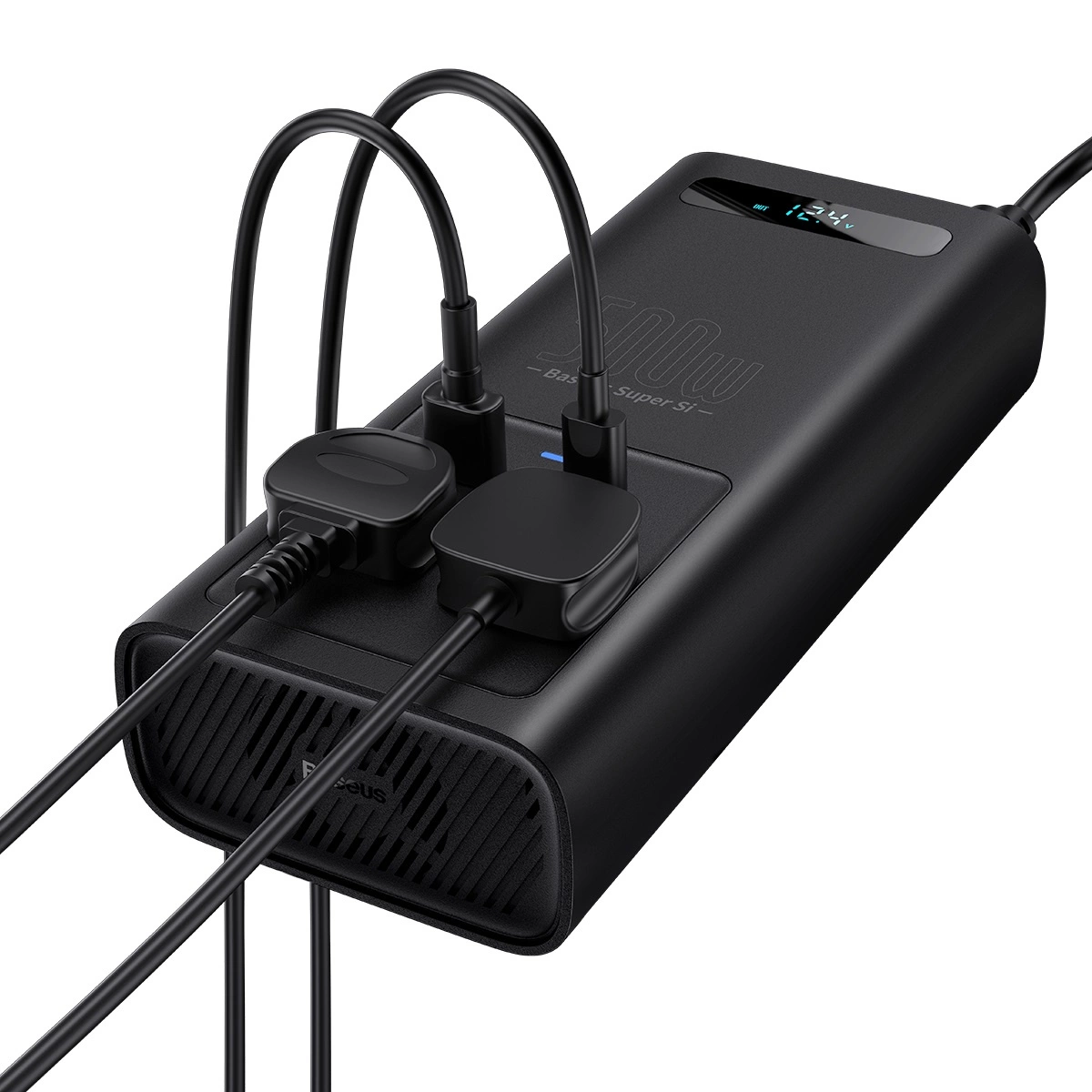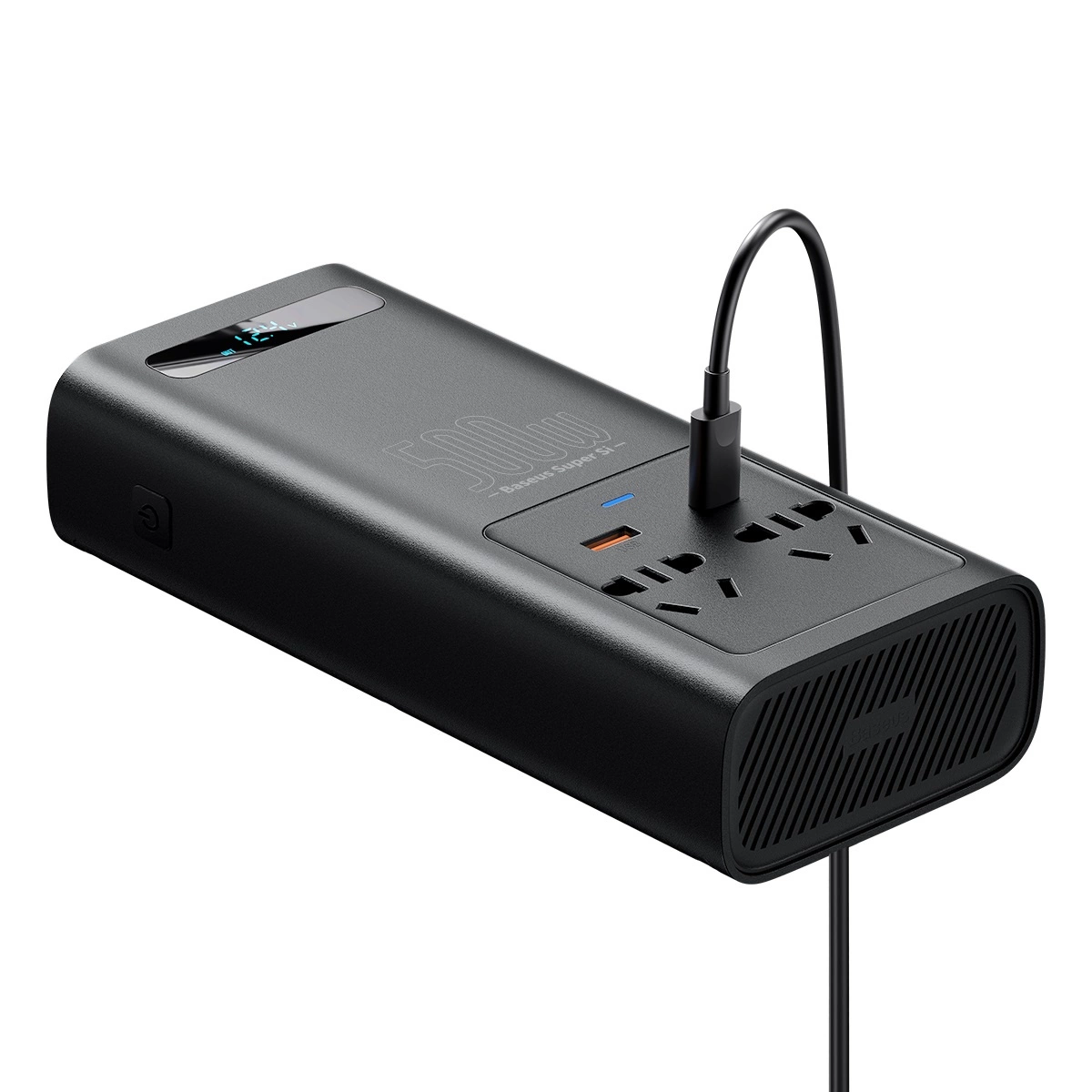 Baseus захранващ инвертор 150W 12V / 500W 220V EU и CN конектор CGNB000101 - черен