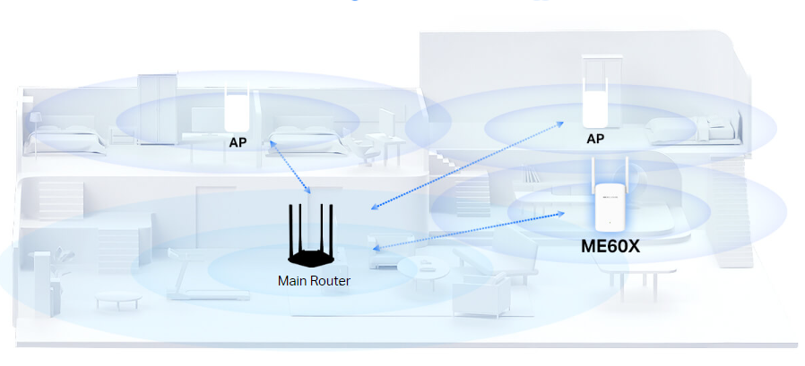 Безжична Wi-Fi 6 Mesh система Mercusys, 1500Mbps, 2.4GHz (300Mbps)/ 5GHz (1201Mbps), Wireless AX, 3x WAN/LAN 10/100/1000Mbps, 2x LAN 10/100/1000, Halo H60X(2-pack) AX1500
