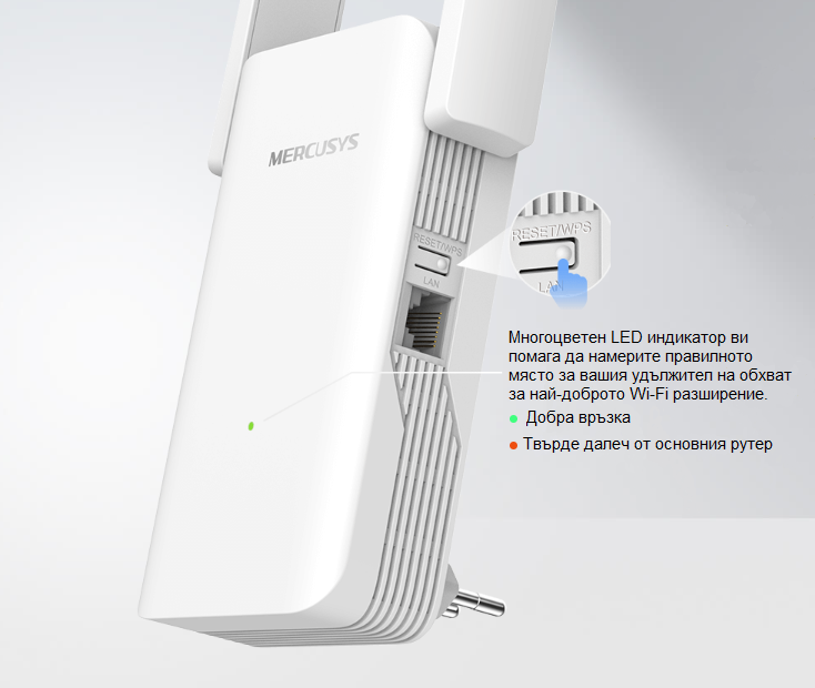 Mercusys MR60X, 1500Mbps, 2.4GHz (300 Mbps)/5GHz (1201 Mbps), Wireless AX, 2x 10/100/1000Mbps LAN, 1x 10/100/1000Mbps WAN, 4x външни антени