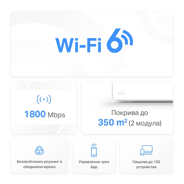 Безжична Mesh Wi-fi система TP-Link Deco X10 (2 pack), 1500Mbps, 2.4GHz (300 Mbps)/ 5GHz (1201 Mbps), Wireless AX, 2x 10/100/1000 Mbps RJ45, 2 вътрешни антени