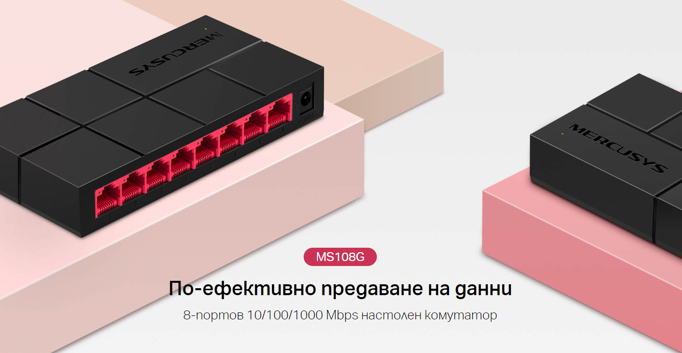 Mercusys MS108, 8 port 10/100Mbps, неуправляем, настолен, компактен дизайн