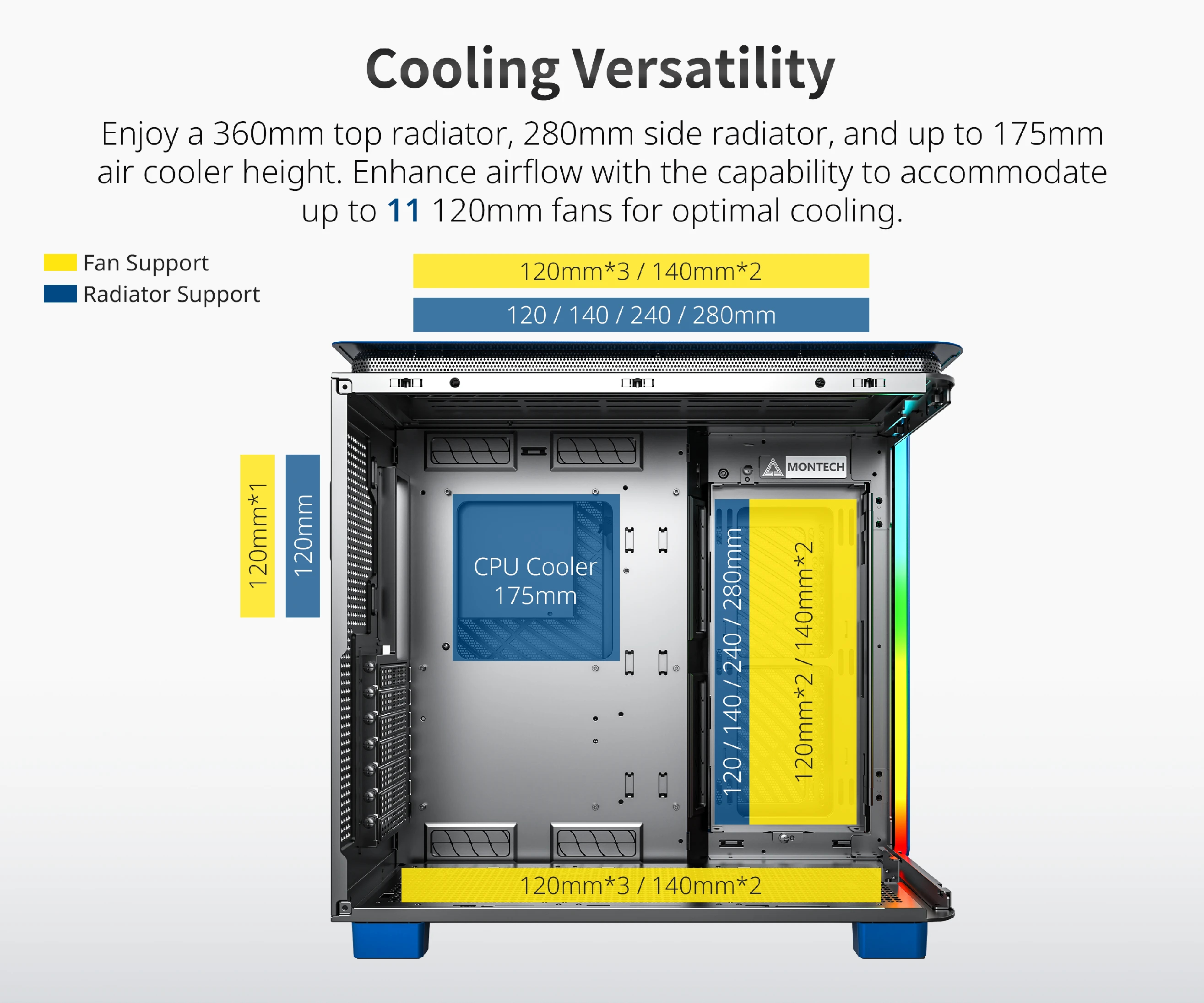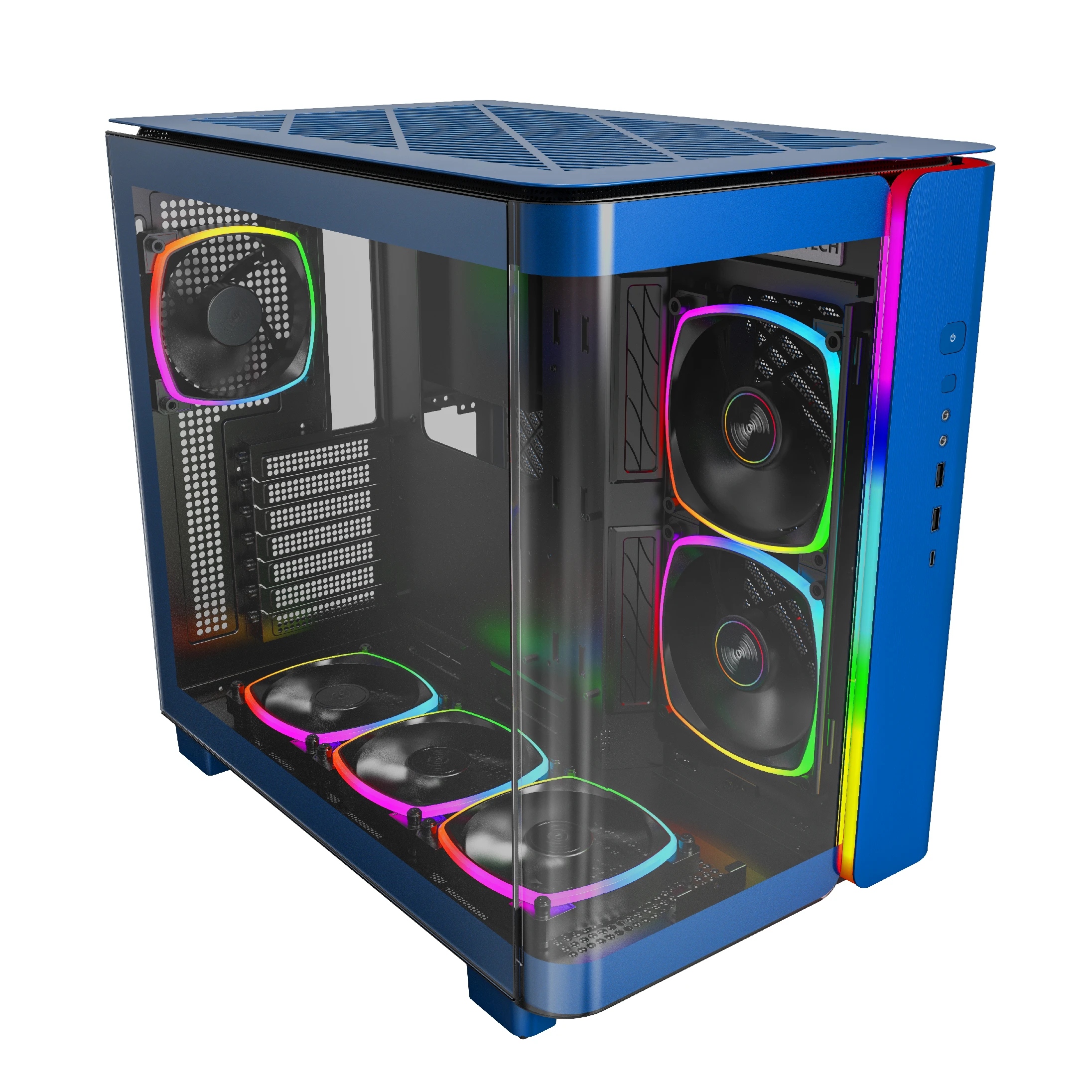 Montech Montech кутия KING 95 Pro, Dual Chamber Mid-tower Case, 6 ARGB Fans, 2 Front Panels, Prussian Blue - MONTECH-KING-95-PRO-PB