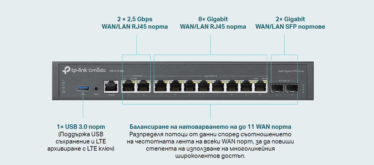 48-портов гигабитов и 4-портов 10GE SFP+ L2+ управляем комутатор с 40-портов PoE+ и 8-портов PoE++ TP-Link Omada SG3452XMPP (v)