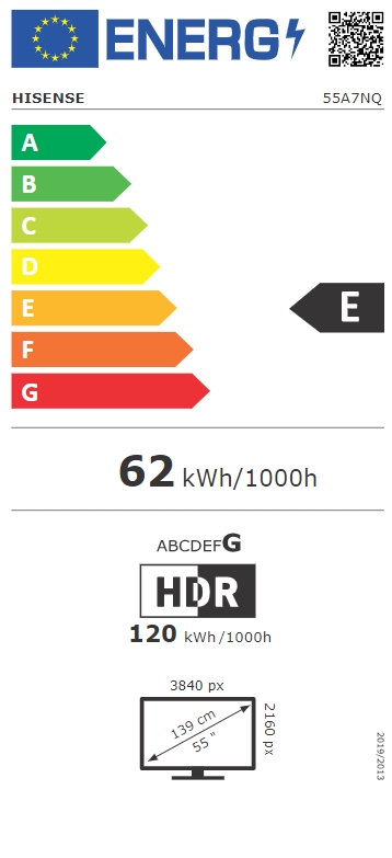 Hisense 55" A7NQ, 4K Ultra HD 3840x2160, QLED, FALD, Quantum Dot, HDR 10+, HLG, Dolby Vision, Dolby Atmos - 55A7NQ