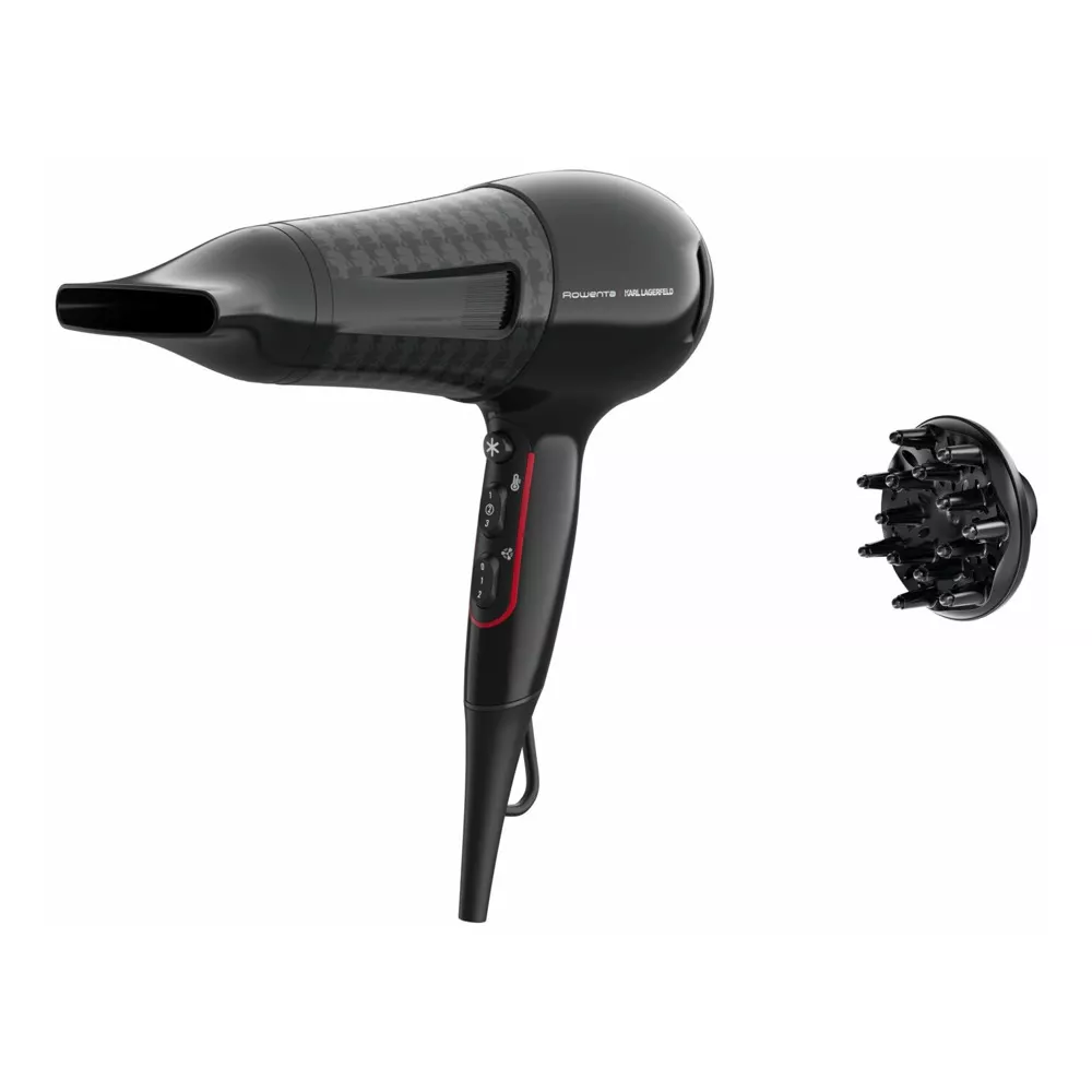 Сешоар Rowenta X Karl Lagerfeld Powerline 3 CV591LF0, 2300W, 2 скорости, 3 настройки на температурата, студена струя, йонизация, черен