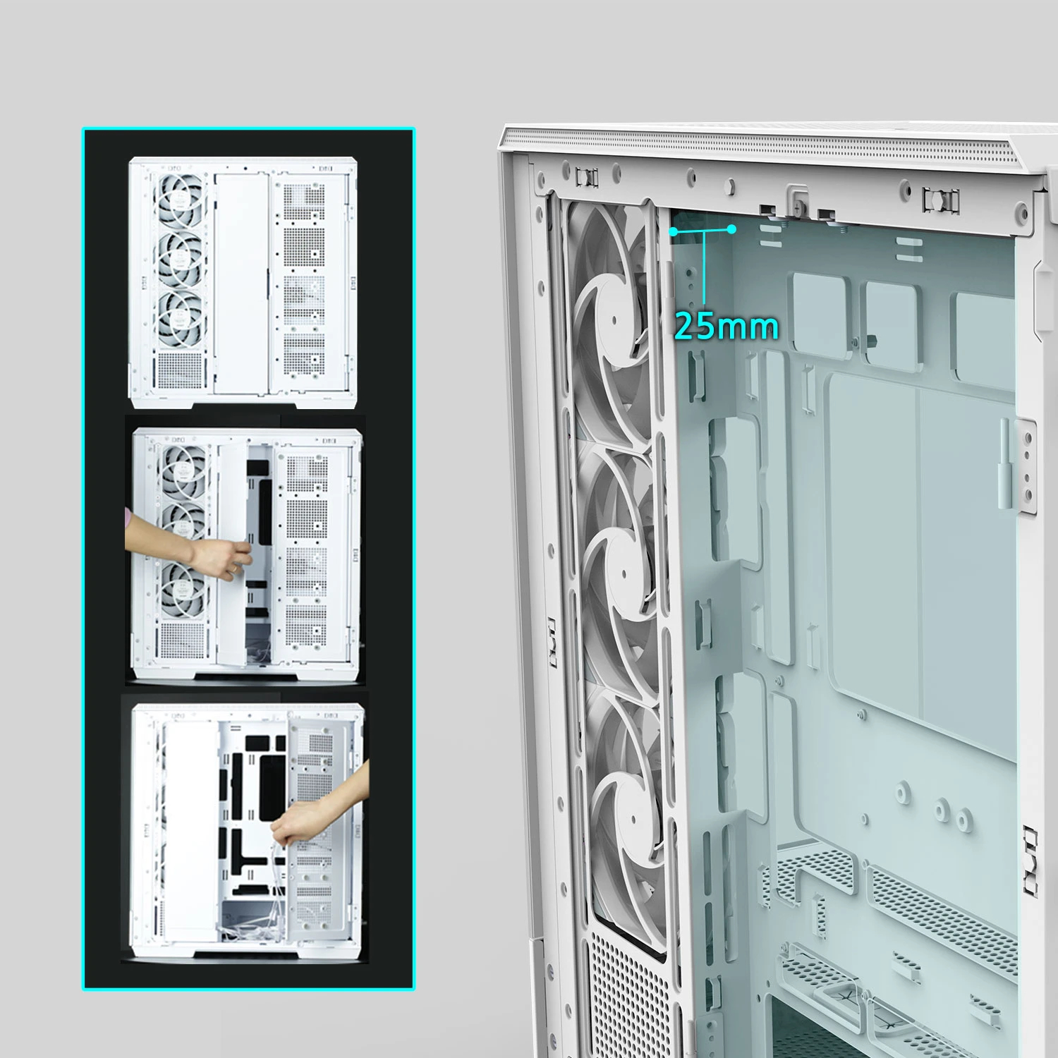 Montech Montech кутия KING 95 Pro, Dual Chamber Mid-tower Case, 6 ARGB Fans, 2 Front Panels, White - MONTECH-KING-95-PRO-WH