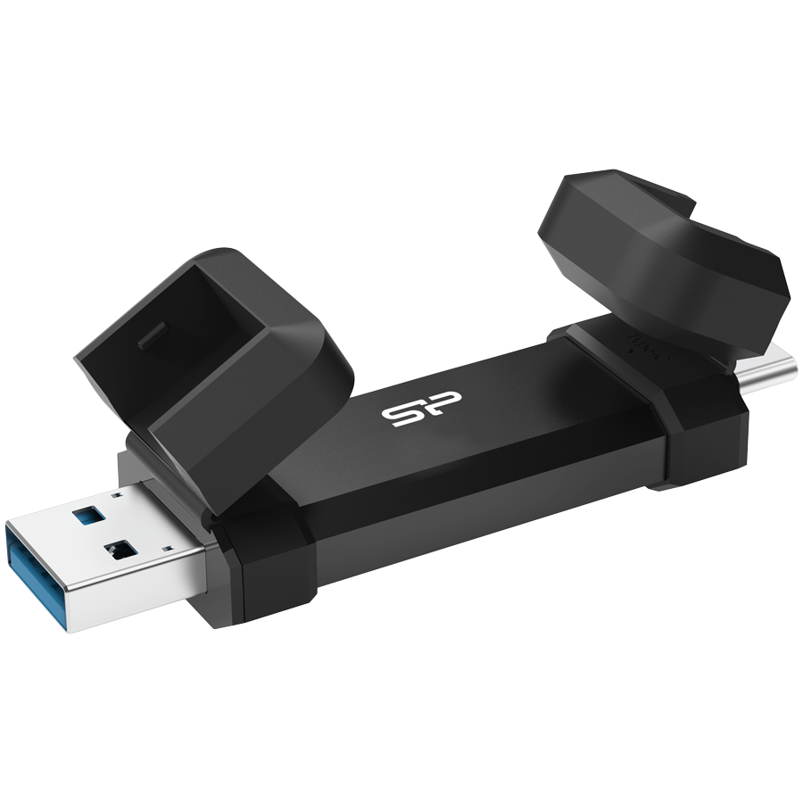 Silicon Power 500GB DS72 Dual USB-C/USB 3.2 Gen 2, Portable External SSD, Steam Deck and iPhone 15 Pro, R/W: up to 1050MB/s; 850MB/s, Black - SP500GBUC3S72VPK