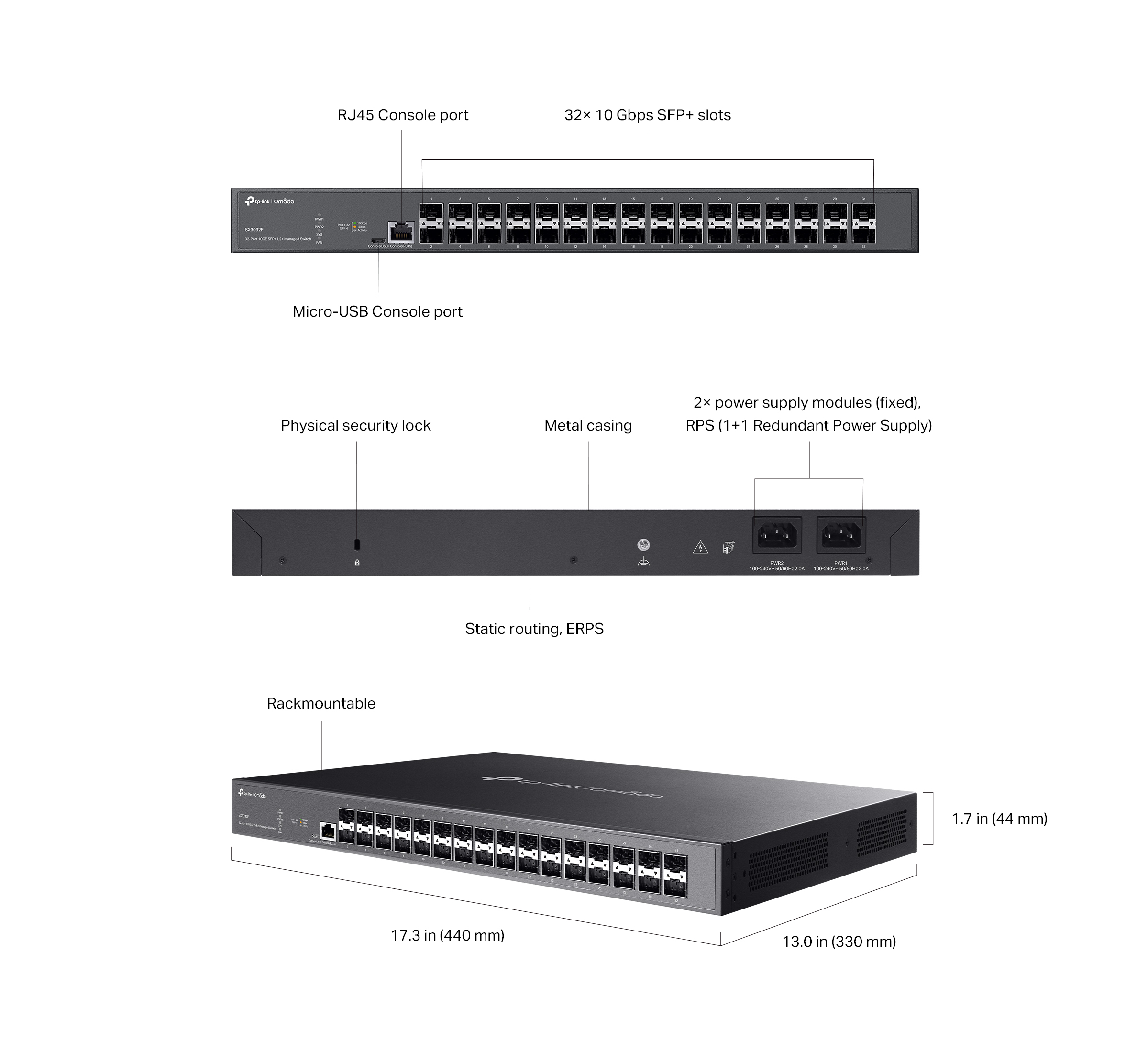 32-портов 10GE SFP+ L2+ управляем комутатор TP-Link Omada SX3032F (v)
