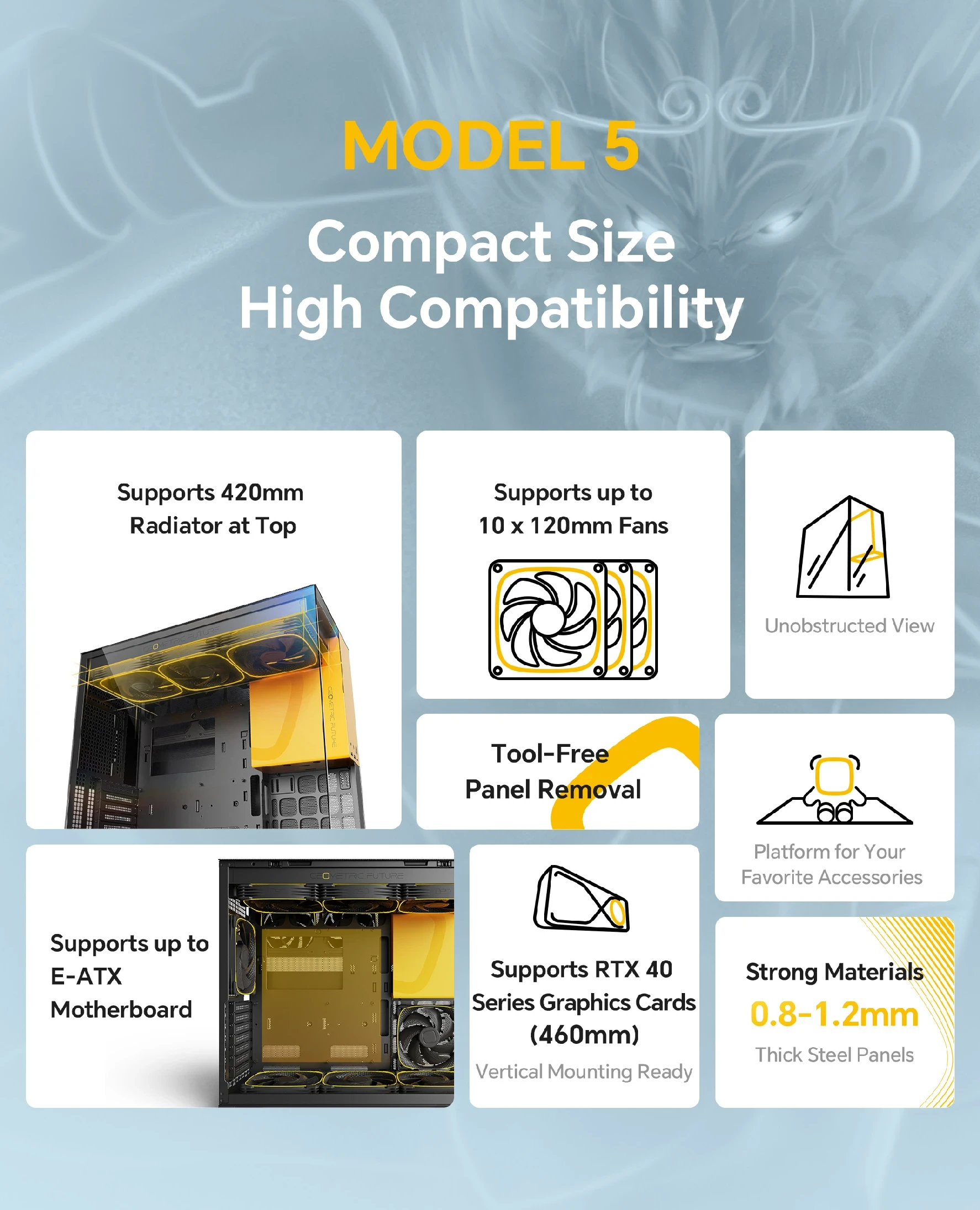 Geometric Future Geometric Future кутия Case EATX Model 5 Black/Yellow 5 x 140 mm aRGB fans included - GEO-M5F-BY